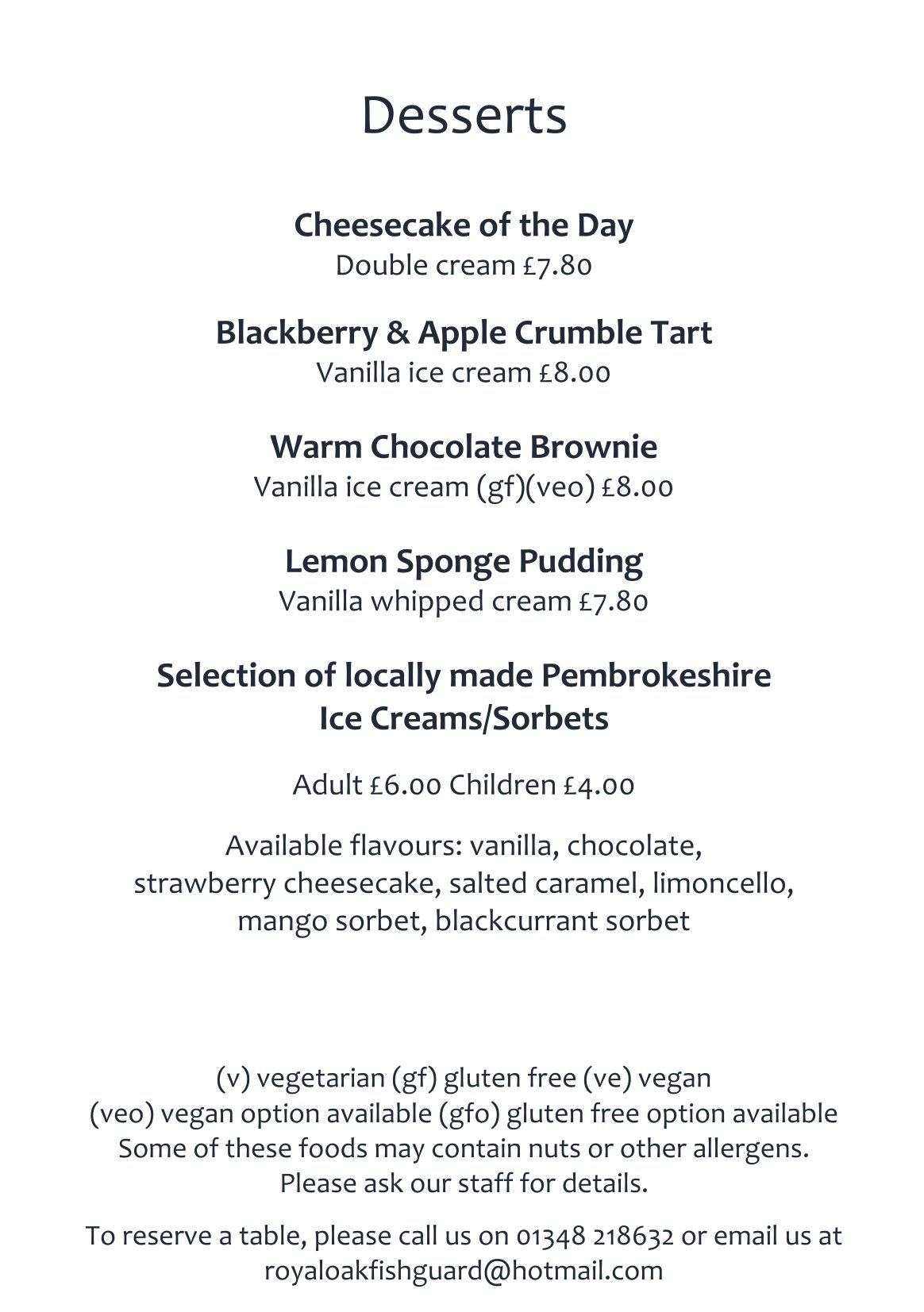 To book a table please use our online reservation systme below or contact us 01348 218632.